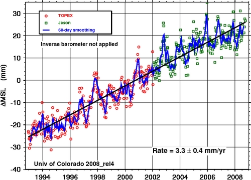 I know Bolt doesn’t like to let facts or reason get in the way of his daily diatribes — and as a general rule, I leave most of his nonsense alone. But this bizarre referral to the below graph as evidence that we — silly global warming alarmists — shouldn’t worry about rising sea levels because they haven’t risen in the past couple of years, is a gem.